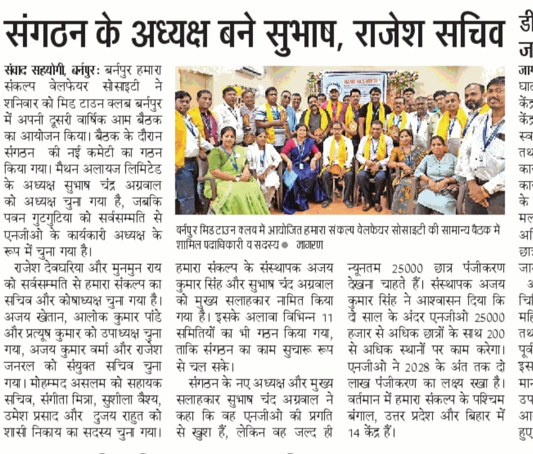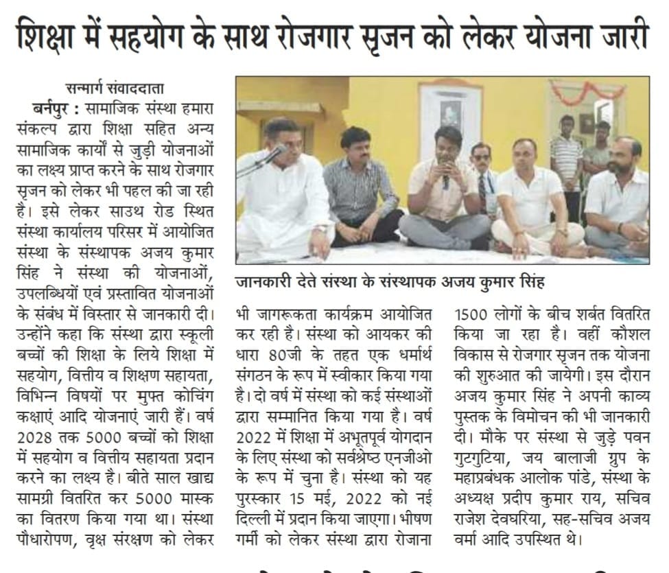 Hamara Sankalp is emerging as India's foremost non-governmental organization, focusing on education, skill development and employment creation, with a mission to uplift the lives of countless underprivileged students by offering financial and intellectual support. The society consistently conducts various social welfare activities aimed at empowering impoverished women, persons with disabilities, and the elderly, fostering a life of dignity.